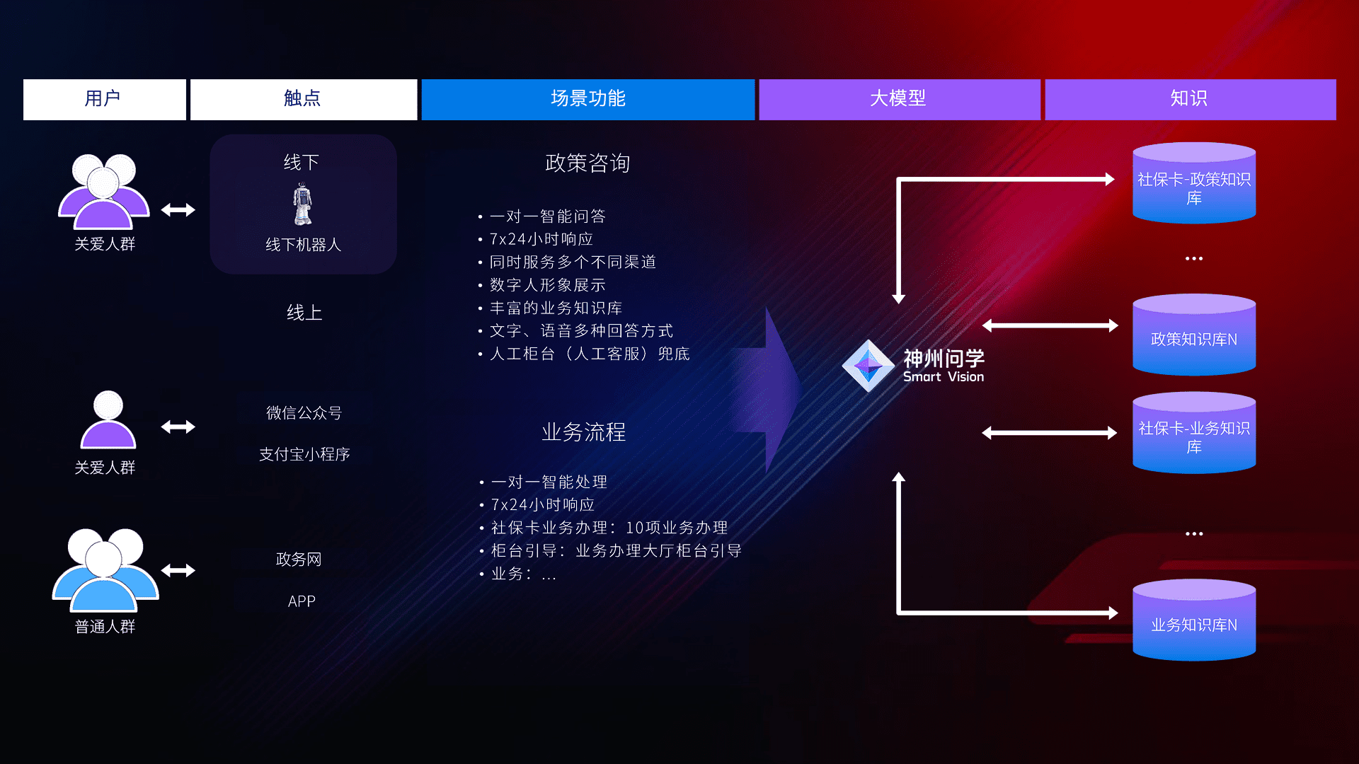 • 线上线下全覆盖:线上提供微信公众号、、支付宝小程序、、、政务网、、app多种渠道,,,与线下机器人形成完整服务体系。。